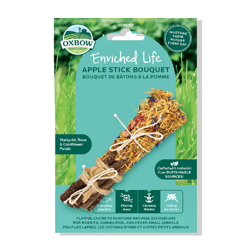 Buquê de varinhas de maçã Oxbow Enriched Life, especialmente concebido para pequenos roedores. Feito com ingredientes naturais e seguros, oferece e...