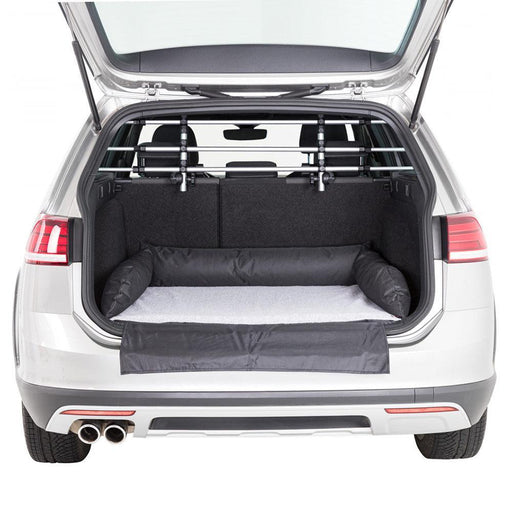 - Nylon - Protege da sujidade e pelo do animal - Pala para proteção do pára-choques - Laterais elevadas protegem o forro interior da bagageira - Com revestimento especial anti-derrapante para uma maior segurança do cão - Adapta-se a qualquer bagageira graças às varetas metálicas flexíveis - Fácil colocação e remoção - Cor: preto - 1,64 x 1,25 cm - Lavável à mão