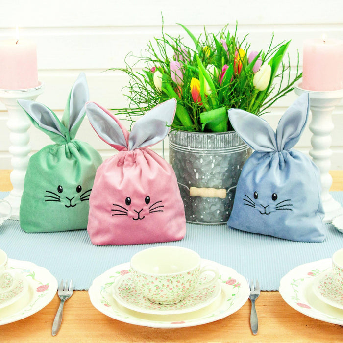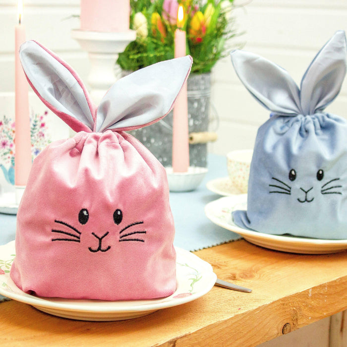 Oferecemos excelentes sacolas que podem ser utilizadas como uma alternativa à cesta de Páscoa, além de servirem como uma bela decoração para a época. As adoráveis bolsas de veludo podem ser preenchidas repetidamente e depois fechadas com as orelhas, tornando-as práticas e encantadoras.